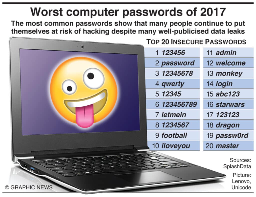 2017 legrosszabb számítógépes jelszavai. Ugye a tiétek nincs közöttük? 🙂