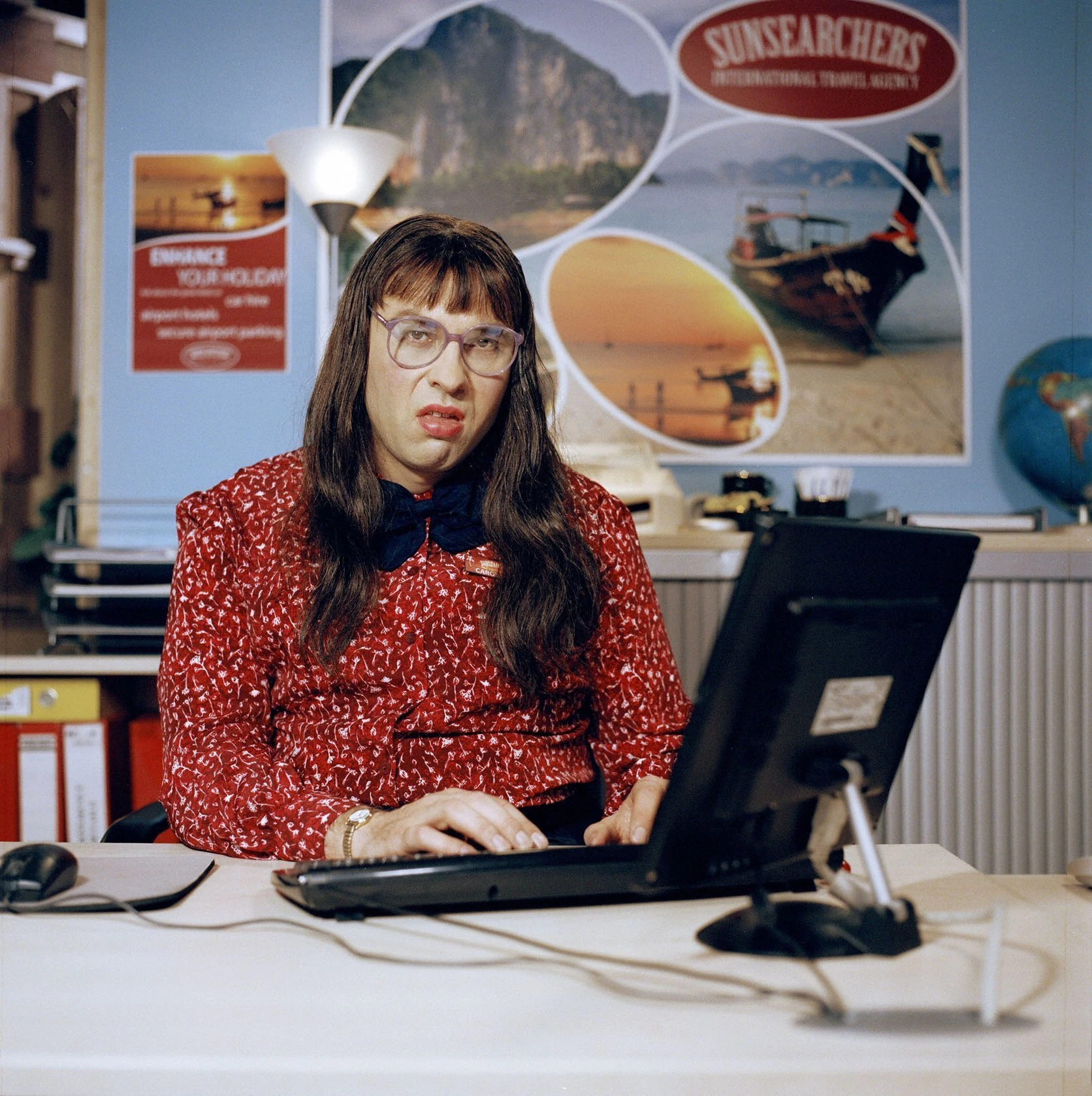 Carol Beer has left her job at the bank and is now delighting customers in this travel agency in a new town, Sponge Bob Squarepants.