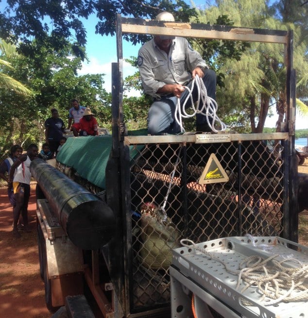 Caught using a float trap, it took three days to lure Shorty into his cage where a big piece of meat awaited him. The trap was configured so that when the 3.7-metre monster bit down on his dinner, the steel trap’s door closed behind him. He was then pulled out of the water and taken to a nearby crocodile breeding facility.