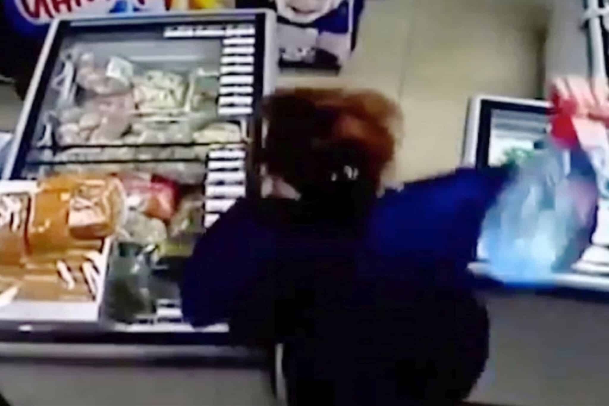 Feisty female shop assistant chases gun-wielding armed robbers with bottle of WATER
