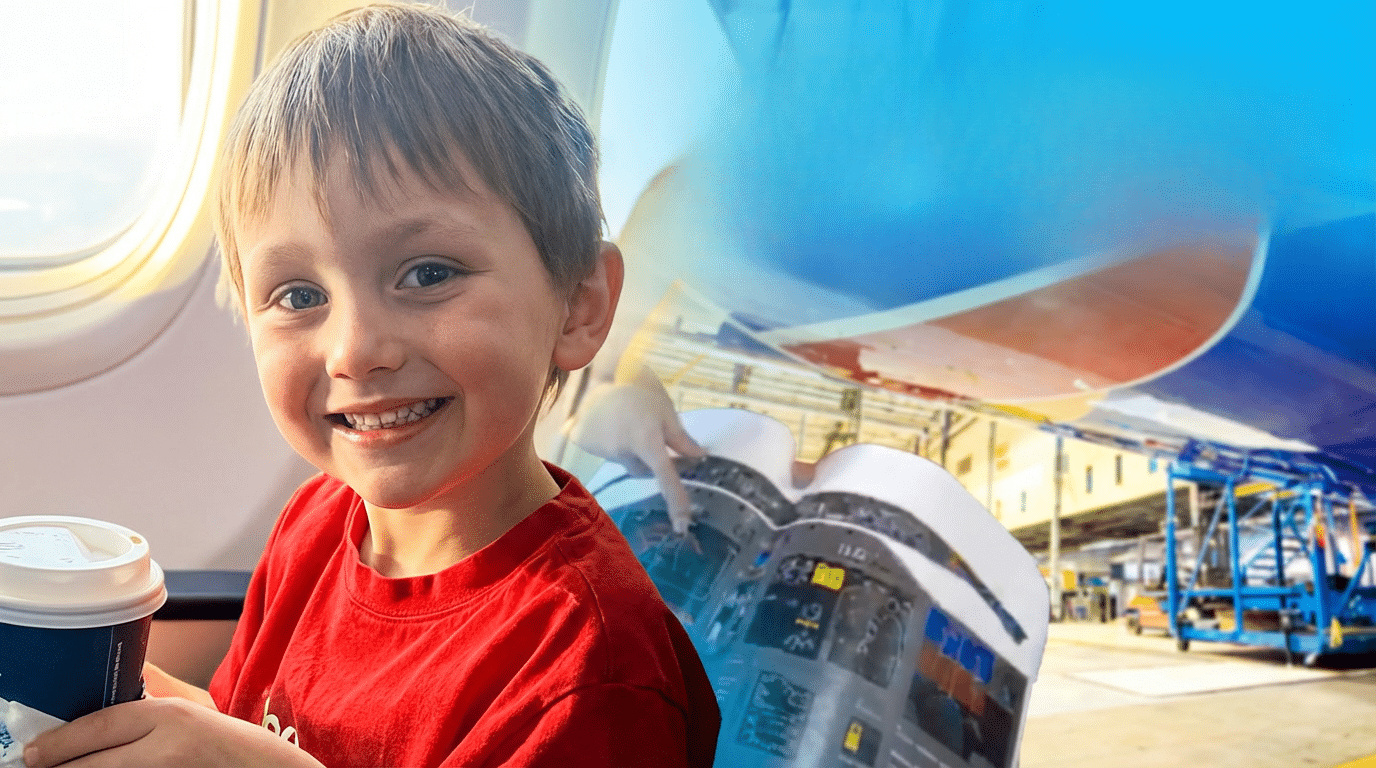 You’re on the tips of the wings. Traveling by plane takes you on a journey. Because they get you from place to place a lot faster than a car does. For five-year-old William Hines, I love flying. It’s a mode of transportation that hits home. I don’t have to walk 7,000 miles.
