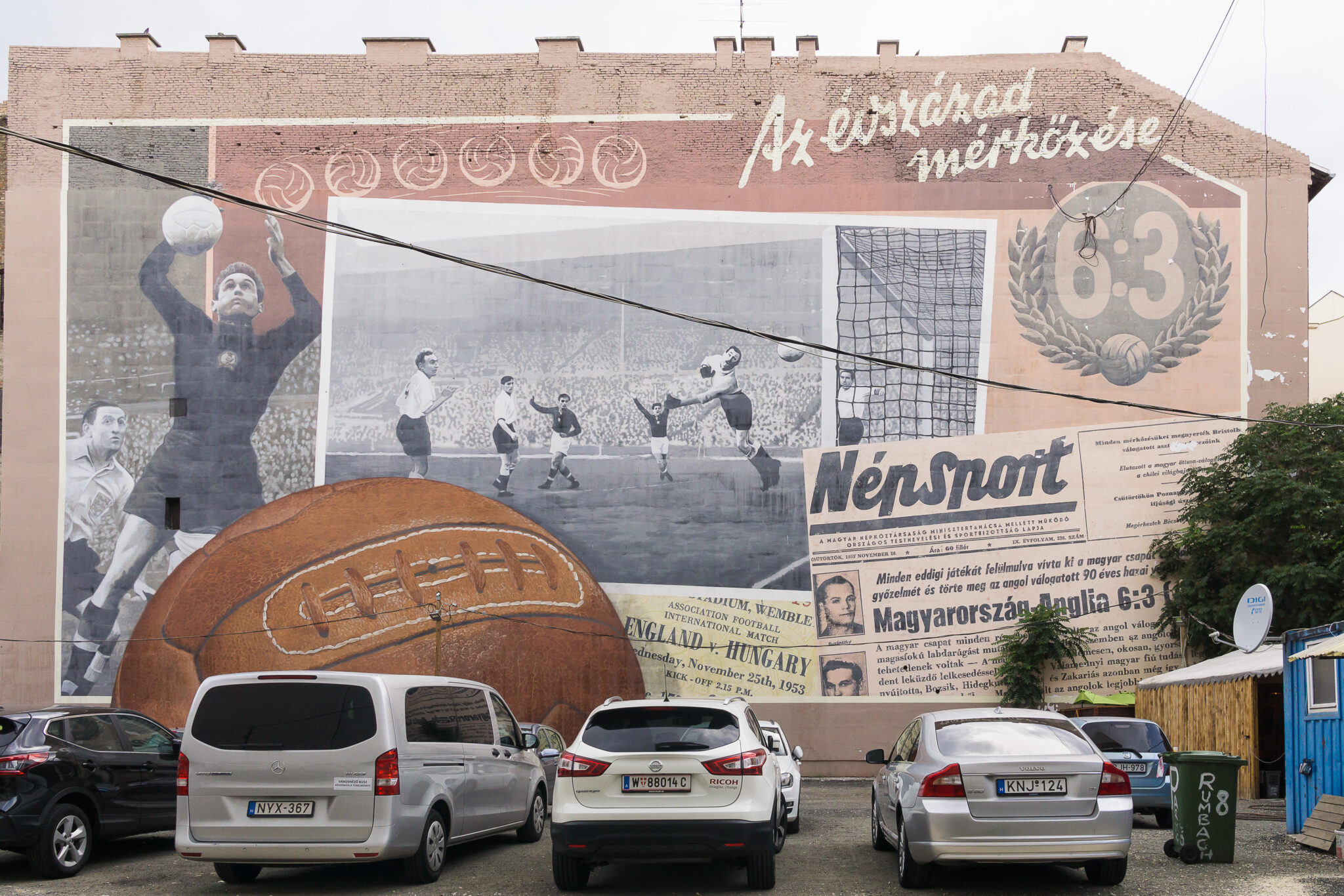 Hungary used to be quite good at football. Stars of the time, Öcsi Puskás and his “Golden Team” defeated every opponent they faced on the pitch. However, their 6-3 victory over England stands out as their most famous triumph, and this mural honours it.
