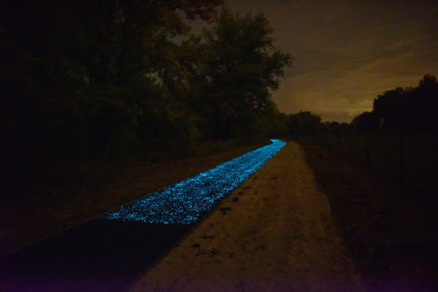 The new solution uses special particles that are mixed into the lane’s building materials made of a fluorescent material that glows in the dark. The company started the project earlier this week.