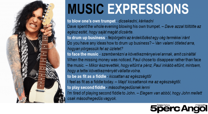 5 MUSIC EXPRESSIONS Szalai Nóri2013.02.28.2025.03.10.5671 újrakezdő Facebook 5 gyors zenés idióma jelentéssel és magyar példamondattal.
