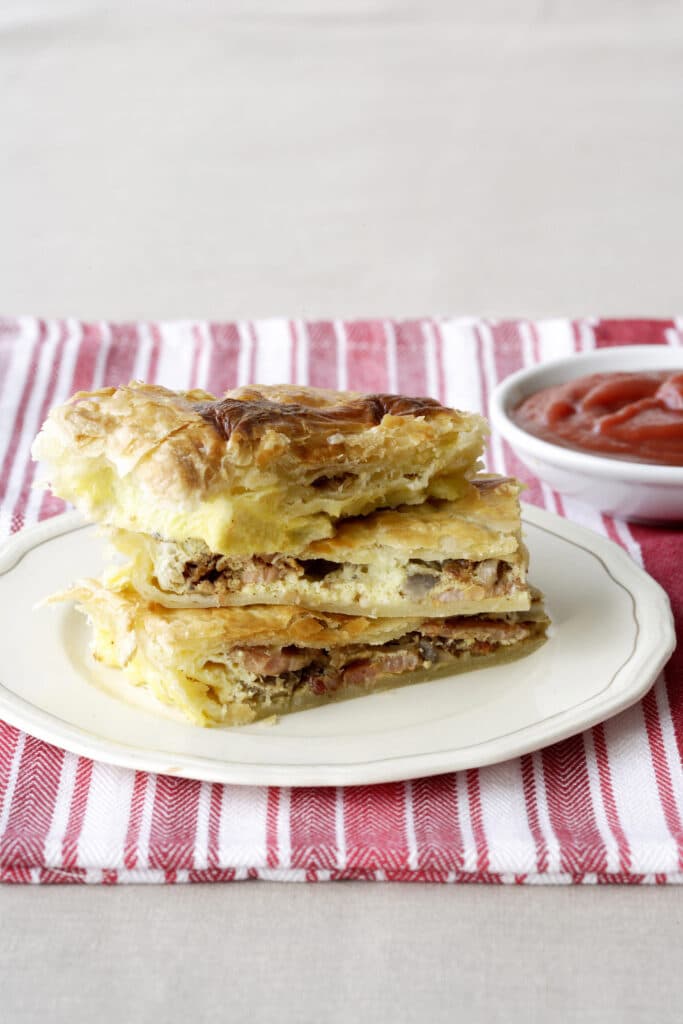 5. Brush the top of the pastry with egg and place in the oven for 30 minutes until the pastry is golden brown and the egg is cooked.