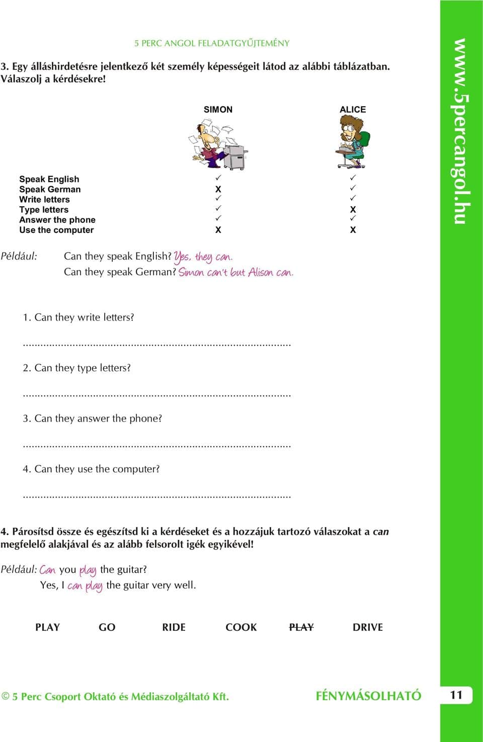 Szókincs: jobs and occupations (állás), CV (életrajz), office objects (irodában található eszközök), school subjects (iskolai tantárgyak), education (oktatás)